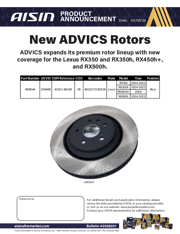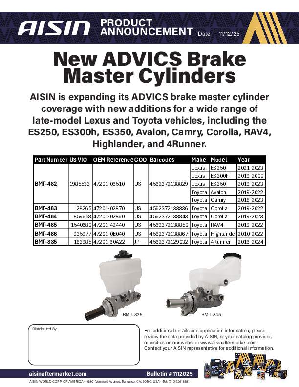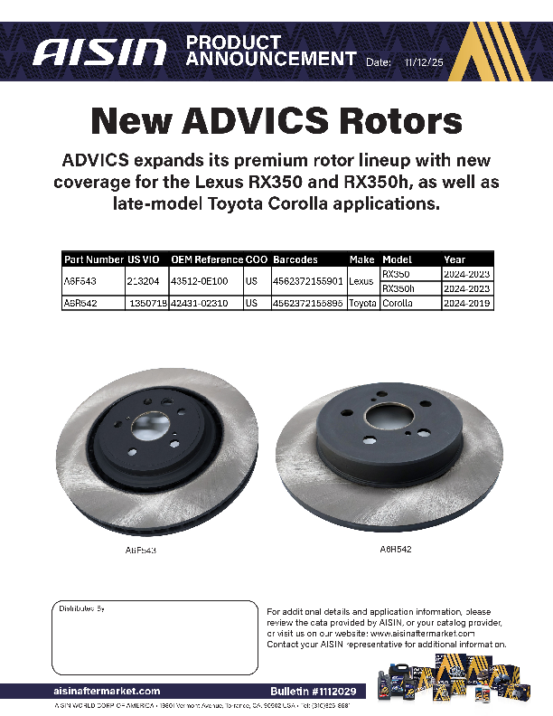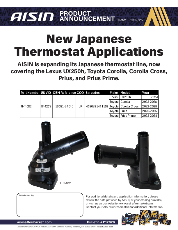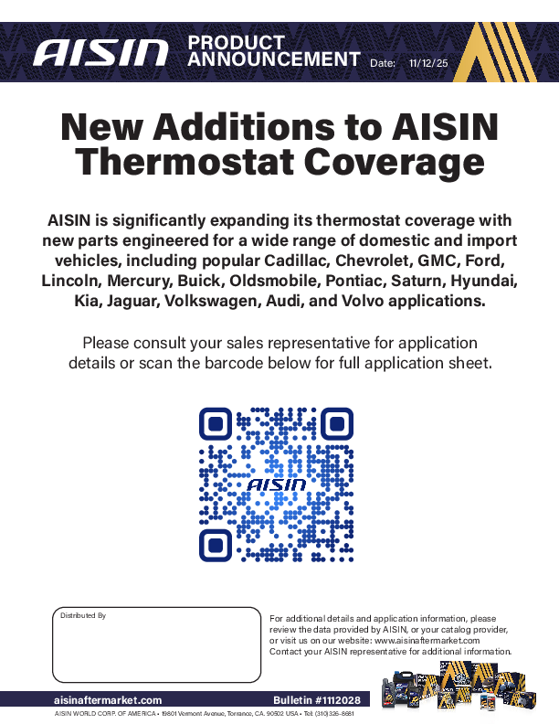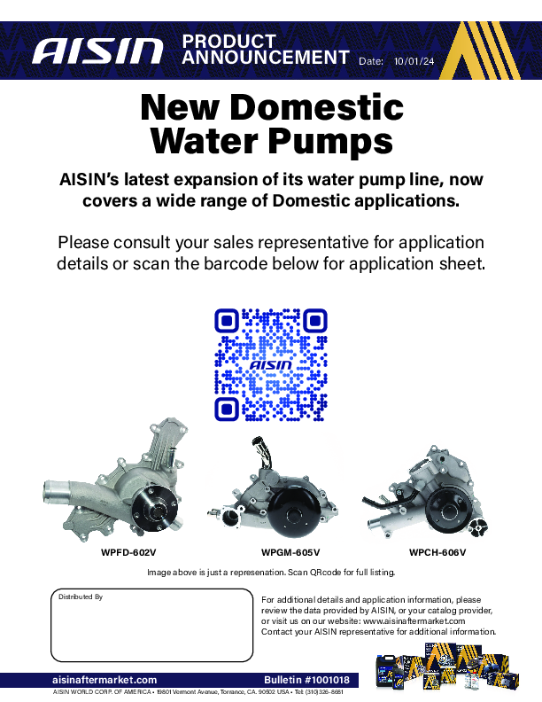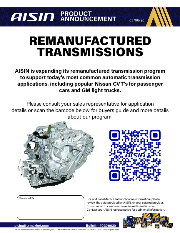 This is where you will find the most recent bulletins posted by AISIN. The bulletins cover a wide array of information from corporate news and latest developments to new and updated products.